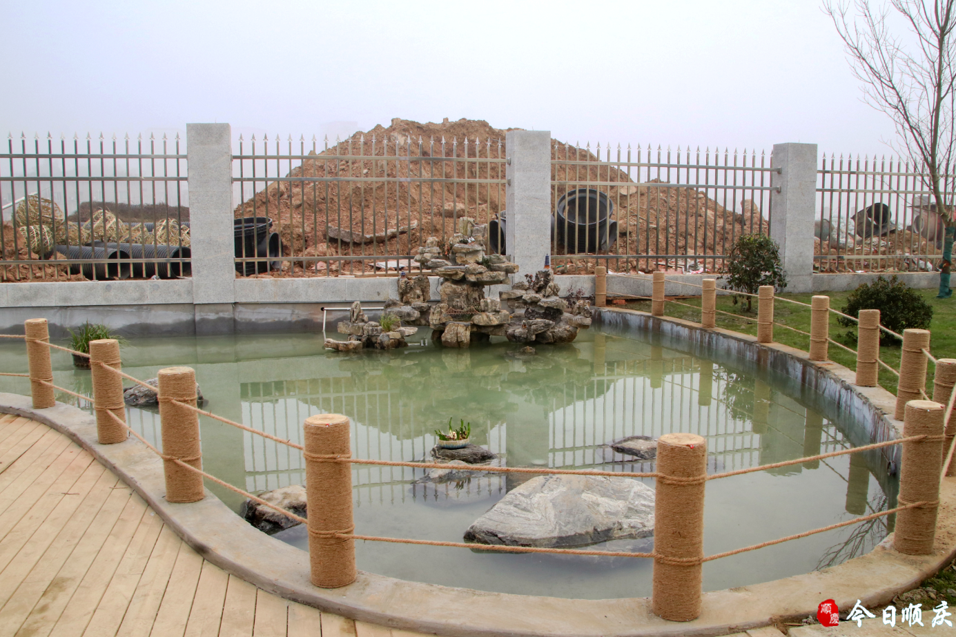 虽是寒冬,但该污水处理厂配套公园——水元素主题公园,却是生意盎然,杜鹃花、山茶花、菊花争奇斗艳,木樨、马尾松、雀舌黄杨高低相间,廊桥、喷泉、假山、水池、公共厕所等一应俱全,工人们置身其中,忙着修葺花坛、铺设草皮、装修公厕。