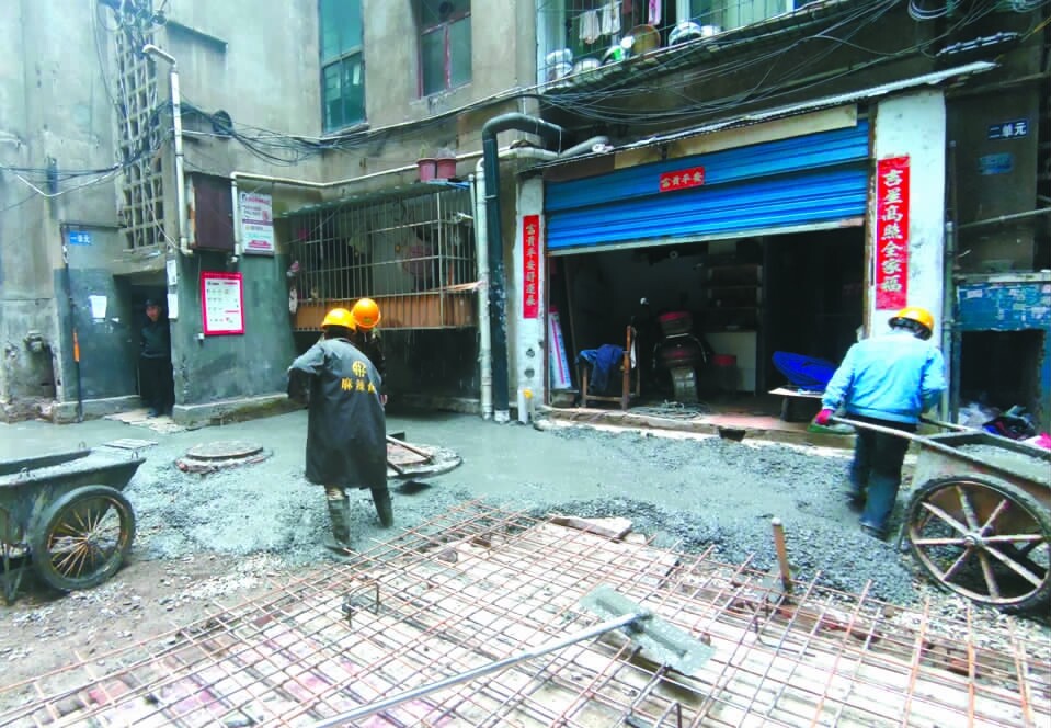 “本次改造施工,除了对地下管网雨污分流外,还进行了楼顶防水、楼梯照明、栏杆维修、新建垃圾棚、停车棚、场地道路硬化等施工。”该负责人表示,改造施工从10月10日开始,目前已完成总工程量的60%,“焕新”的大院值得期待。