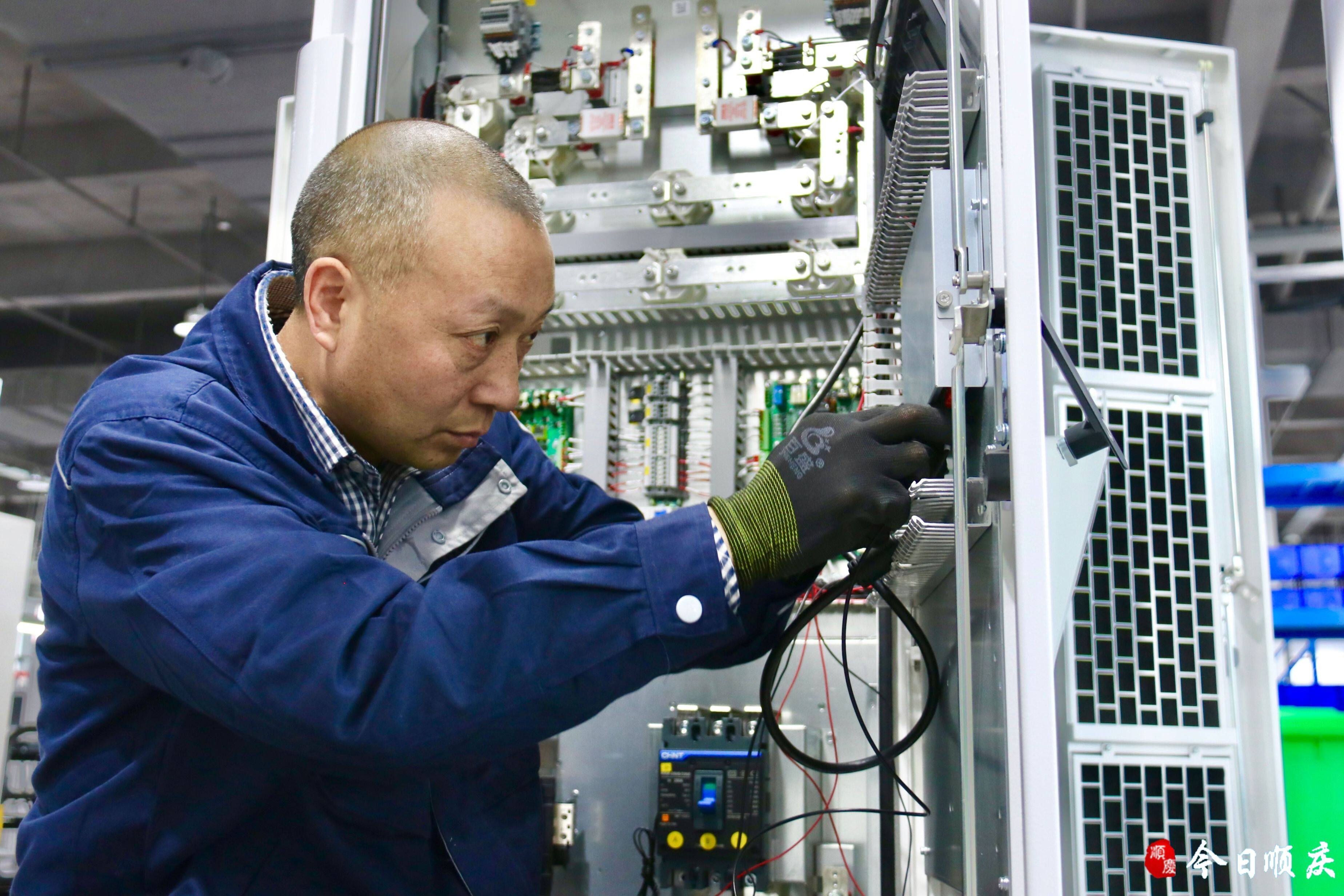 3月29日上午,记者来到位于南充科创中心的南充绿能慧充数字技术有限公司生产基地,一排排崭新的新能源汽车充电桩很是耀眼,穿着工作服的工人在场内忙碌着,有的装配充电桩零件,有的擦拭充电桩,还有的在安装充电桩PCU功率智能控制单元。