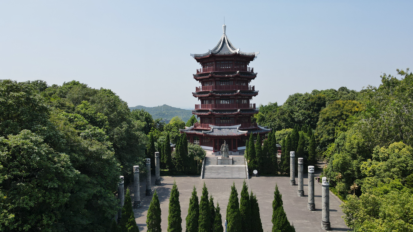而开汉楼位于石材山顶,既是南充历史文化富集区,又是登高望远、鸟瞰南充城市全貌的观景台。据了解,开汉楼高40余米,共6层,全框架塔形结构,汉代风格,屋面采用青灰色琉璃瓦,楼面逐层收分,每层均有走廊环道,木作门窗,底层汉白玉栏杆相围。楼前纪信将军雕塑英武神勇,广场全青石地板和青石栏杆。