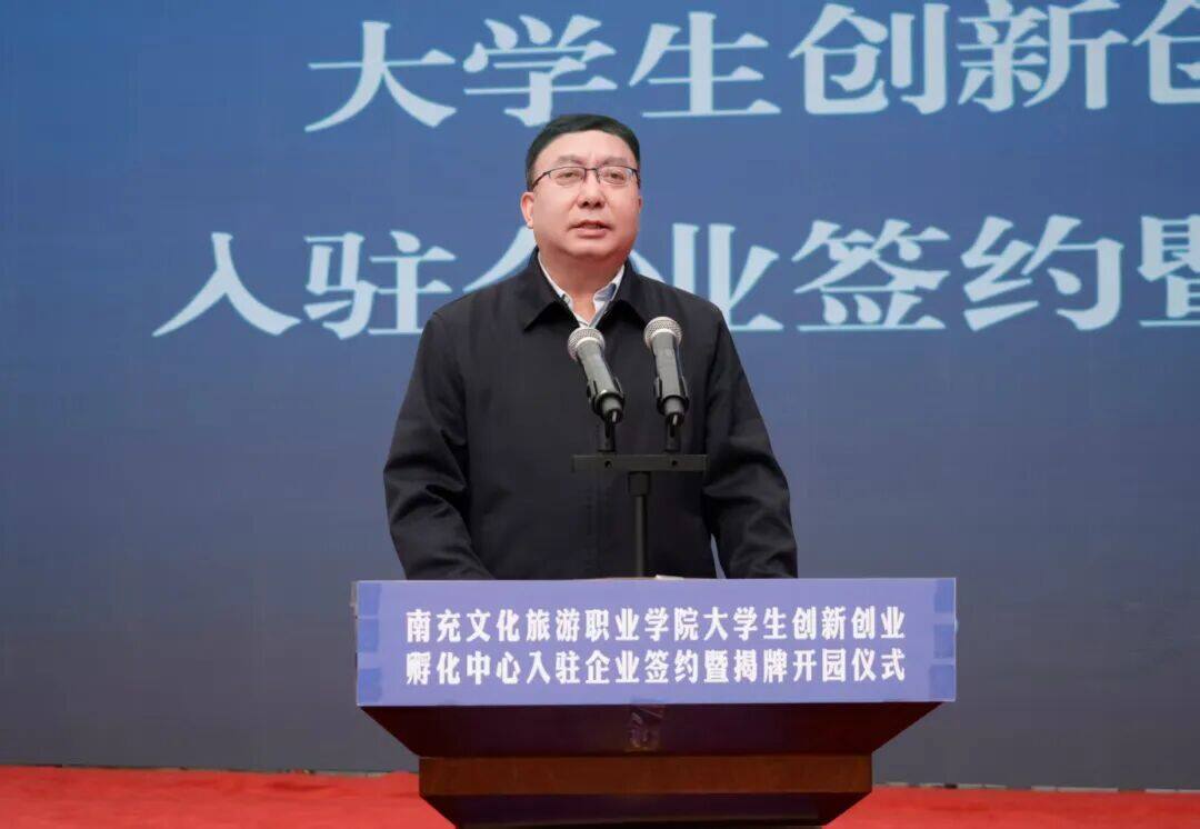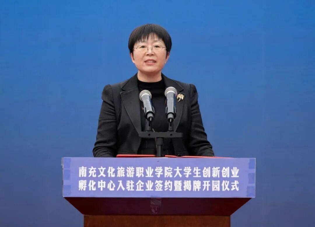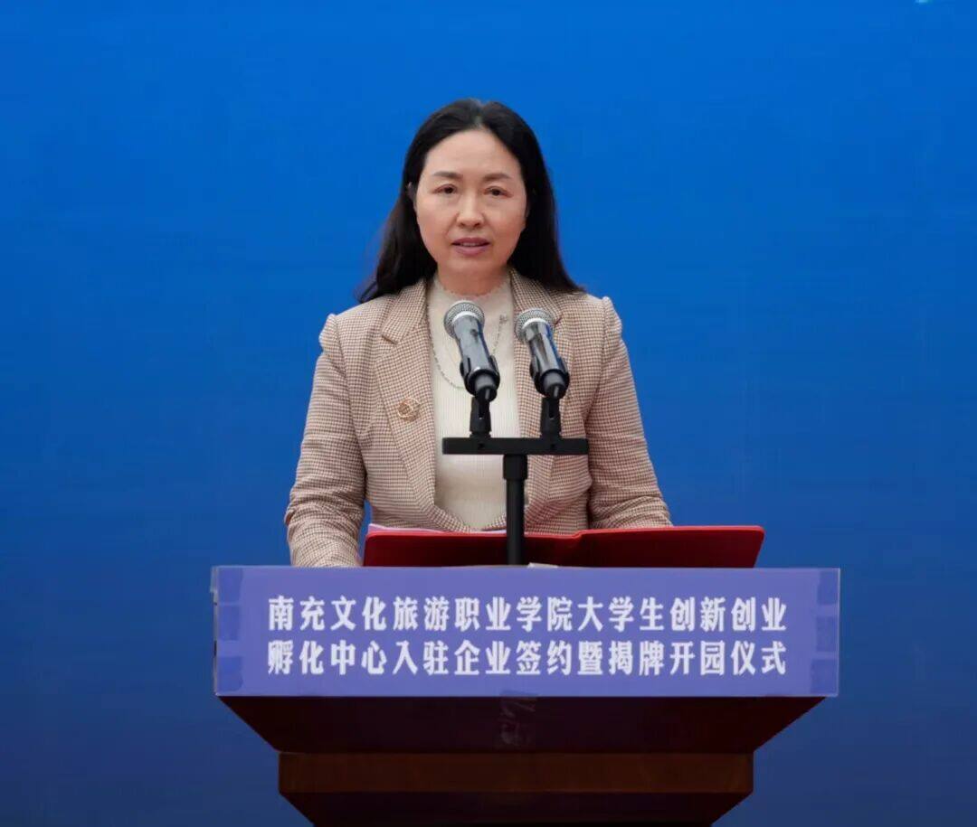 黎萍表示,近年来,全市上下始终将教育摆在优先发展的战略位置,深入实施教育强市战略,以办好人民满意的教育为目标,坚定实施“文旅兴市”战略。学校大学生创新创业孵化中心的建成投用既是校企双方携手未来、共育新机的崭新起点,更是我市推动产教融合、培育新质生产力的生动实践。她希望,“双创中心”能成为产教融合的“示范田”,推动入驻企业带入前沿技术、真实市场和鲜活项目,与学校资源深度融合,携手共建文旅新质生产力培育的创新引擎;希望入驻企业能成为扎根南充的“生力军”,通过自身成功实践,吸引带动更多产业链伙伴入驻南充、投资兴业,共同推动文旅产业高质量发展;希望学校能成为服务地方的“先锋队”,以“双创中心”为支点,紧密对接南充市文旅兴市战略及新兴业态,真正成为南充文旅发展最可信赖的智囊与人才摇篮。