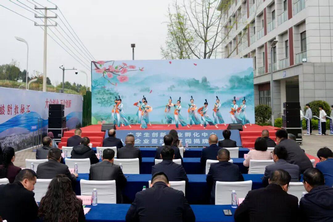 南充市就业服务管理局、工商联、科学技术局、农业农村局、经济和信息化局、商务局、文化广播电视和旅游局、财政局、政协教科卫体委,阆中市委办公室、就业服务管理局、古城景区管理局、文化广播电视和旅游局等相关部门的领导,入驻双创园区签约企业代表,相关行业企业代表以及我校全体在家校领导,各系(部、院)、部门主要负责人参加了签约暨开园揭牌仪式。