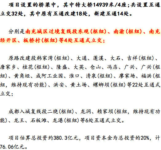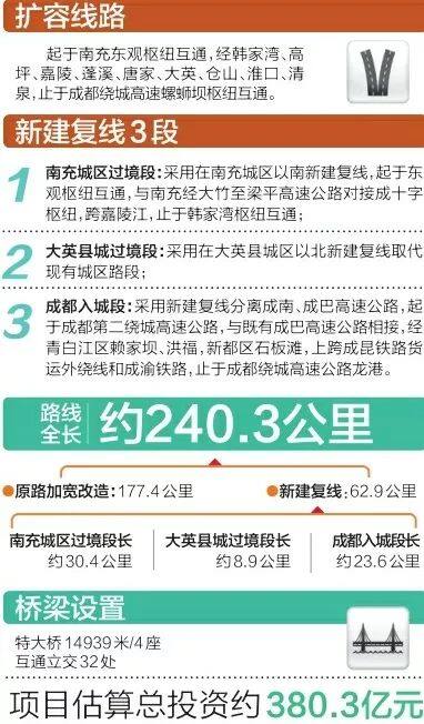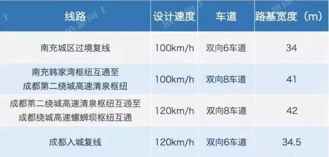 新建复线共有3段,分别为南充城区过境段、大英县城过境段和成都入城段。