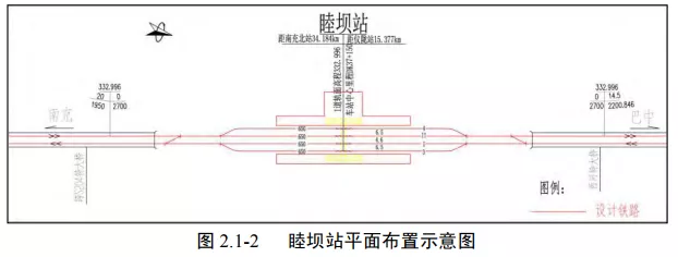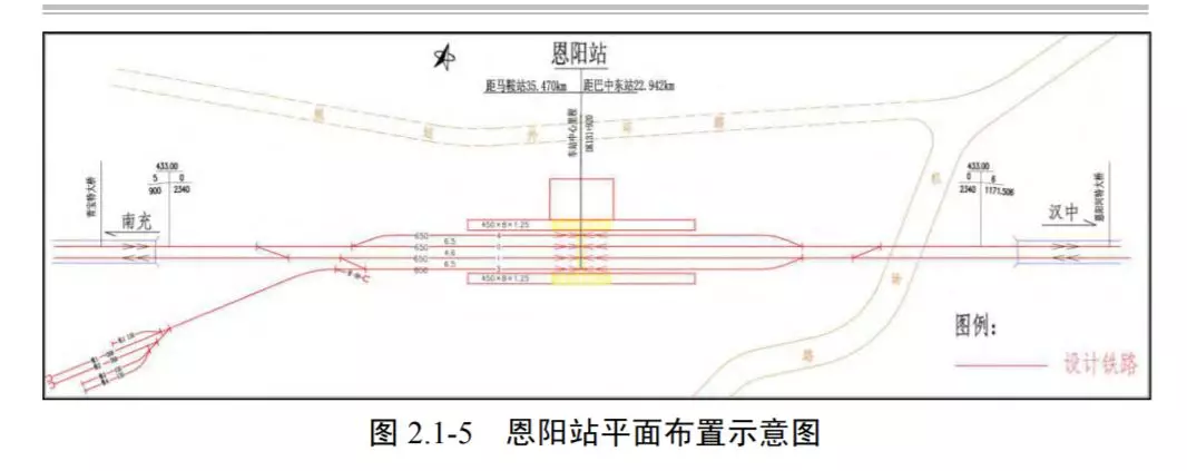 南充北站规模满足本工程近期客运需求,本项目维持既有南充北站规模不变,本线从既有车站北侧咽喉引入。