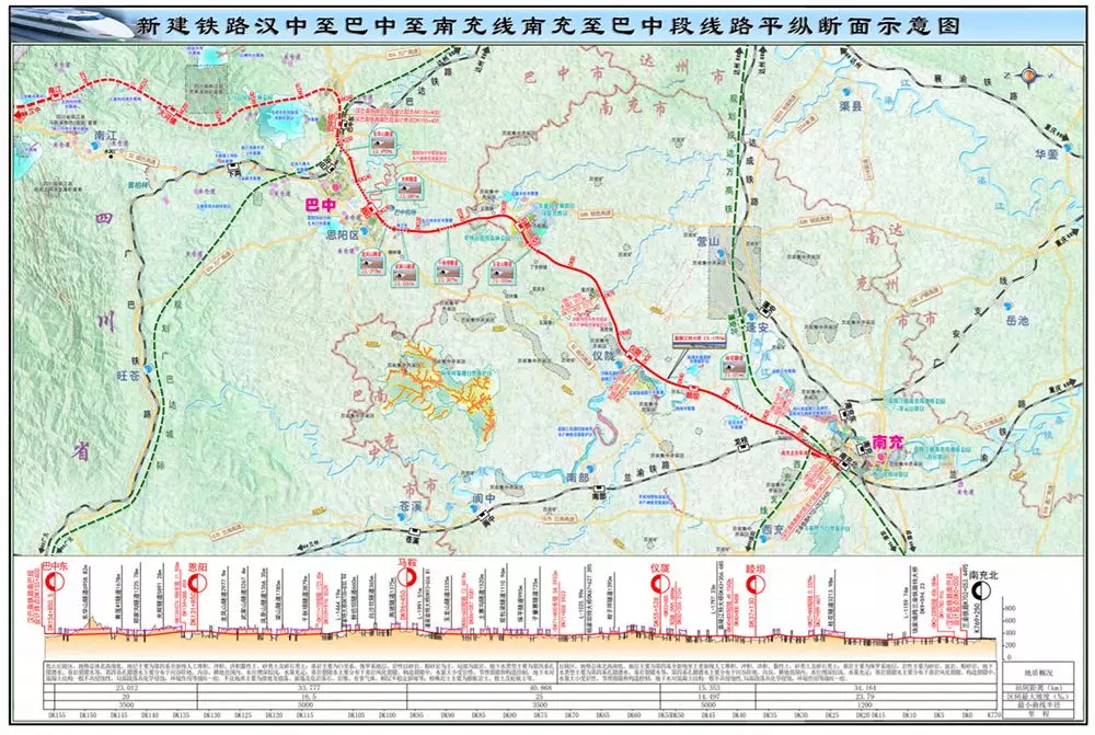 站点:新建站 4 座(睦坝站、仪陇站、马鞍站、恩阳站)、接轨站 2 座(南充北站、巴中东站)